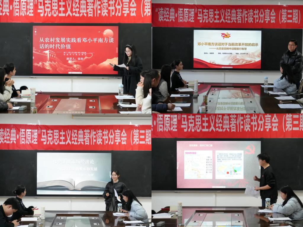 (通讯员/赵彤)12月26日下午,“读经典·悟原理”马克思主义经典著作读书分享会(第三期)在公司五楼会议室顺利举办。本期活动以《邓小平文选》第三卷为核心研读文本,特邀公司涂用凯教授担任导读嘉宾。来自不同专业的硕士研究生积极参与,围绕“南方谈话”等重要篇章,结合学科视角畅谈阅读体会,在交流中深化理论认知,展现了青年学子扎根经典、关切现实的思想自觉。