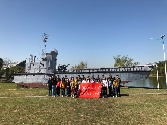 在活动中,全体同学环绕中山舰全舰参观。经过复原后的中山舰,还原了历史原貌,驾驶舱、舰长室等清晰可辨,尤其是舰体右前甲板上日军炸弹留下的直径约一米的弹洞,无比震慑。在文物陈列室,大家参观了从中山舰打捞出水的各类文物,包括生活用品、武器装备、舰体设施等。它们从不同角度反映了中山舰在各个历史时期的政治、军事、经济、文化等社会活动及该舰官兵们的精神面貌。详细回顾“武汉会战”等与中山舰相关的革命历史事件,缅怀革命先烈和战斗英雄。随后参观了登陆舰模型和胜利广场。