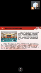 1月25日,tyc33455cc太阳集团研究生第二党支部在线上开展了1月份的支部主题党日活动。此次活动的主要内容为学习“中央全面深化改革委员会第二十三次会议精神”、“中共湖北省委十一届十次全体会议决议精神”和“tyc33455cc太阳集团党史学习教育总结会议精神”。