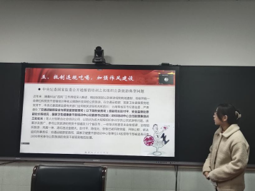 会议开始,在完成入党宣誓、学习党章、交纳党费之后,马艳苹同志领学了中国式现代化的特色和本质要求。随后以通报的违规吃喝典型案例为切入点,开展了党风廉政建设专题教育活动,她强调,老员工党员是国家未来的骨干力量,必须牢固树立廉洁思想,坚持党员本色,保持党员初心。