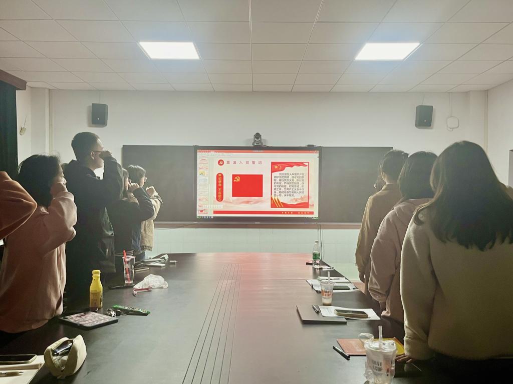 最后,在支部书记的带领下,全体党员举起右拳,庄严宣誓,重温了入党誓词。