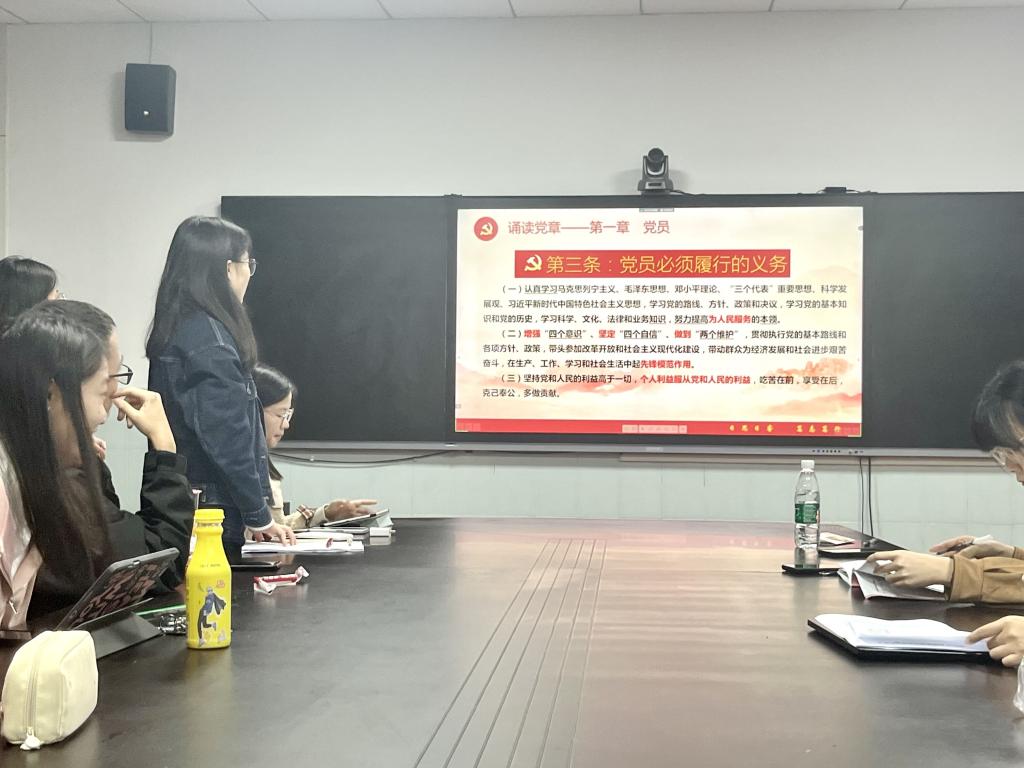 会议伊始,雷小环同志带领全体党员诵读党章并就其相关内容进行学习并提问。随后,全体同志学习了习近平重要文章《在文化传承发展座谈会上的讲话》,深刻把握中华文明的突出特性,深刻理解“两个结合”的重大意义。习近平在文章中强调“‘第二个结合’,是我们党对马克思主义中国化时代化历史经验的深刻总结,是对中华文明发展规律的深刻把握。”要更好担负起文化使命,需要坚定文化自信,秉持开放包容,坚持守正创新。