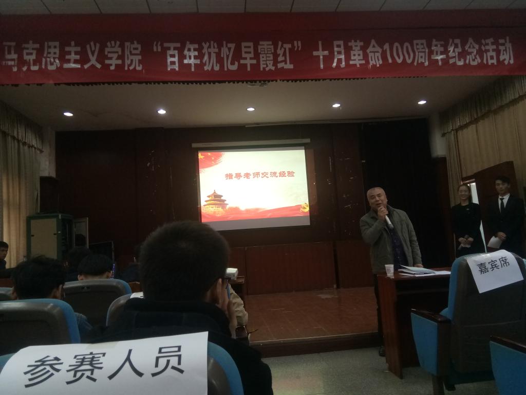 1125号下午,院纪念十月革命100周年演讲比赛暨第25期《理论学习通讯》发刊会模拟法庭举行。公司党委书记汤德森、公司张锴老师胡银银老师以及院团委书记邹浩老师出席活动并担任评委