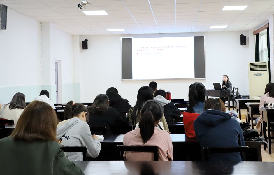 10月25日下午,公司在教2-410教室举办了研究生心理健康系列讲座之“研究生情感关系应对”,公司心理健康教育中心杨歆喃老师应邀担任此次讲座的主讲人,公司2019级全体研究生聆听了本场讲座。