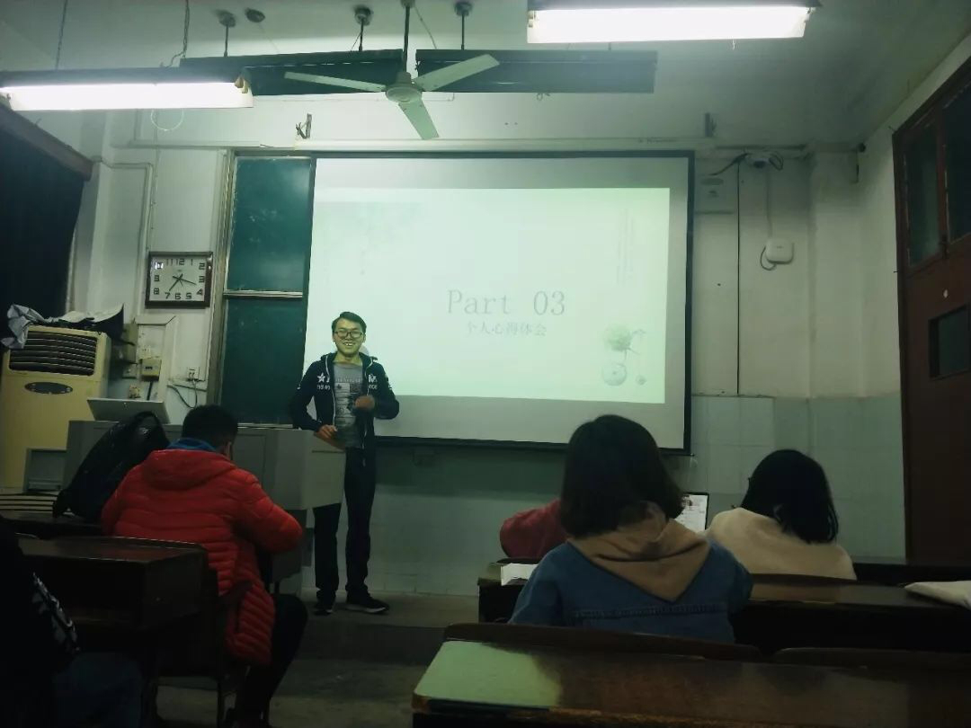 2017级思想政治教育专业本科生喻文婷也分享到:“他们的ppt展示令我印象深刻,无论是排版、字体、字符大小、每一页的容量都处理地十分好,讲稿也十分流畅、逻辑清楚、停顿有序。我感受到自己与他们的差距,也觉得名企偏向于985的员工是有道理的,他们的资质和能力确实配得上。原来学霸们在名校中并没有放松,他们的课外阅读量很多,为课业学习投入的时间和精力也很多,我们应该要更加勤奋,以他们为榜样,只有更加努力,才有机会追赶上他们的脚步。”