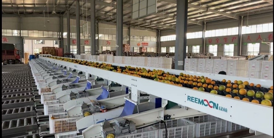 (图为自动化生产线正在对夏橙进行分级)