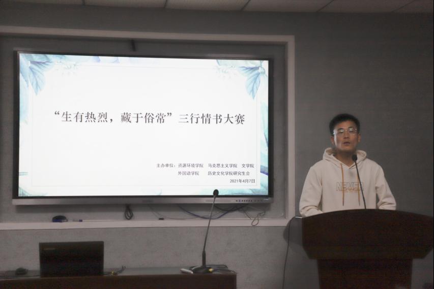 为了体现公司特色,增加同学们对于所学专业知识的理解。4月16日晚,由tyc33455cc太阳集团、资源环境公司、文公司、外国语公司、历史文化公司研究生会联合举办的“生有热烈,藏与俗常”三行情书比赛在文公司B6016会议室成功开展,五院研究生会和部分同学参加了此次活动。