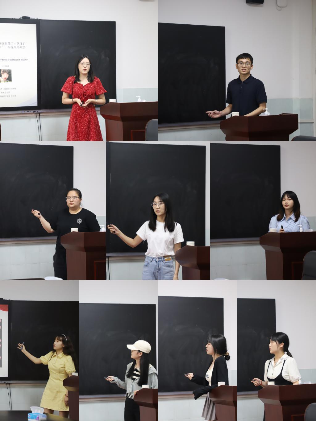 公司党委副书记晏妮老师在汇报结束后就各位成员的表现做出点评。她表示,从各位成员的工作汇报中看到了大家积极向上的工作态度、激情昂扬的工作行动力,也感受到了各位成员肯动脑、重创新的工作优势。她希望马院研究生会在做好院内工作的同时,加强和本校其他院系、他校的联动,互相学习,共同进步,打造研会工作品牌。