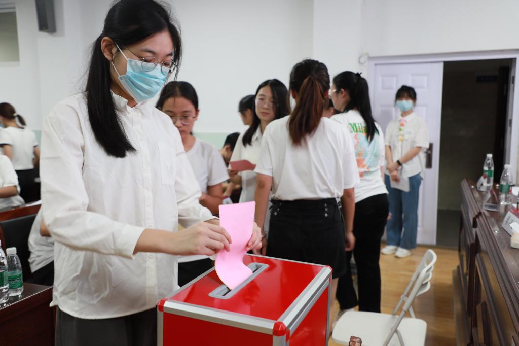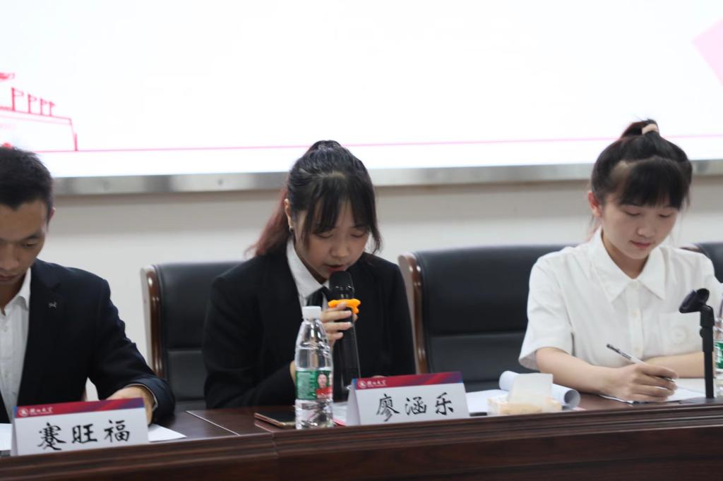 校员工会主席团成员廖涵乐发言,充分认可公司员工会工作,勉励全体代表们不负青春,不负韶华,不负时代,认真学习,深刻领会新的工作需求,并落实到今后的学习工作中,以优异的成绩迎接二十大。