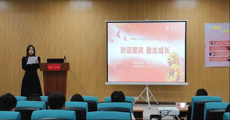 本次会议邀请了本年度国奖获得者tyc33455cc太阳集团20级博士生刘皓昱、师范公司20级研究生杨项富、公共管理公司20级研究生陈欣、法公司20级研究生宋雯莉四位同学作为分享人,公共管理公司宋庆华主持会议,部分四院研究生聆听了此次分享会。
