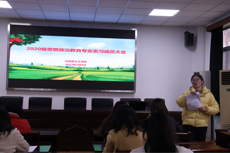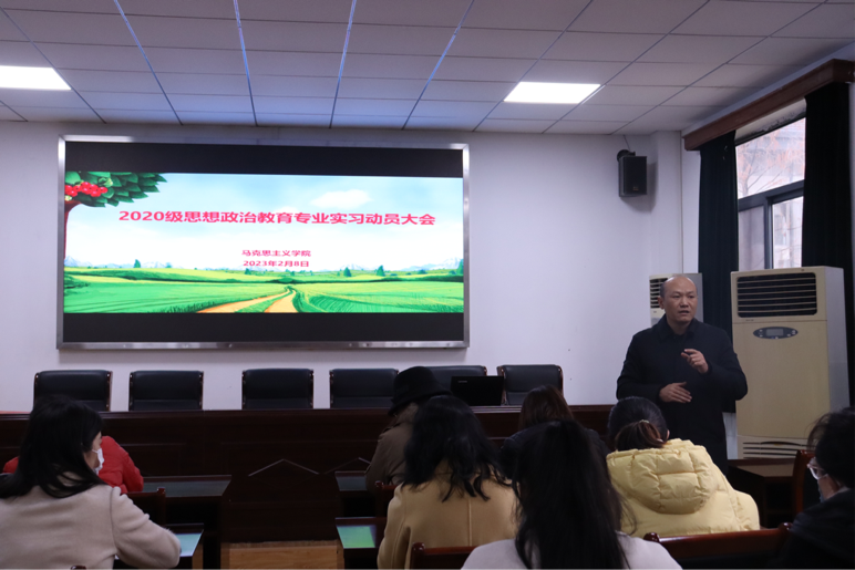 2月8日下午13:40,tyc33455cc太阳集团2020级思想政治教育专业教育实习动员大会,在教二410教室如期举行。公司副经理徐信华,2020级全体指导教师和在校实习员工参加会议,政教系副主任胡银银老师主持动员会议。