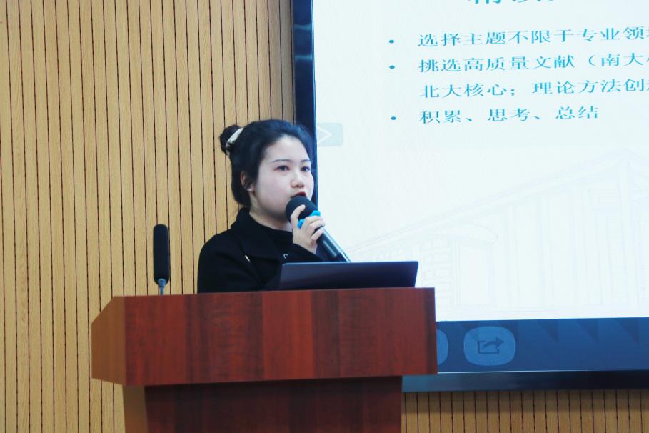 公共管理公司国奖获得者、2021级公共管理专业硕士研究生戴李怡详细介绍了自己从迷茫无从下手,到逐步掌握技巧,再到发表多篇论文的“升级打怪”过程。她强调,写作科研论文不是一蹴而就的,需要耐心和积累,要不断精读文献,进行思考与总结。