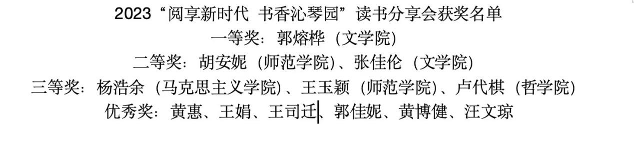 (通讯员李璐瑶 祁丹悦)为响应2023年研究生学术科技节的号召,激发研究生学术科研热情,培养研究生科研精神和创新实践能力,11月16日晚七点,公司联合法公司、文公司、师范公司、历史文化公司、哲学公司在读书分享会在逸夫楼D栋2008组织开展以“阅读新时代、书香沁琴园”为主题的读书分享会活动。