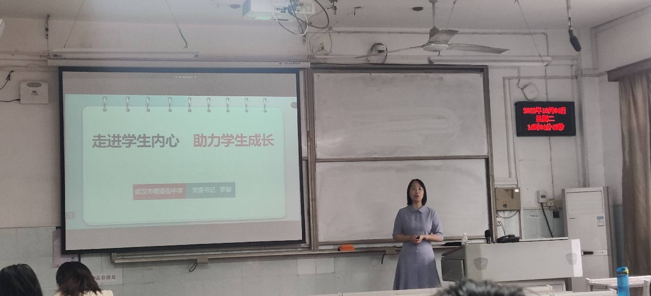 10月4日下午,武汉市粮道街中学副董事长罗璇老师在教2-210教室为tyc33455cc太阳集团19级政教专业全体同学主讲“优秀教师成长”专题。本次专题讲座由政教系副主任胡银银主持。