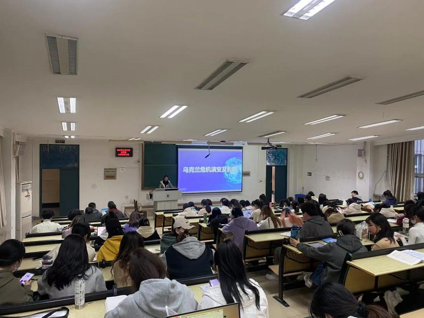 11月17日下午,王敏老师在四号教学楼105教室为公司思想政治教育专业19级、20级、21级本科生讲授题为“乌克兰危机演变及影响”的形势与政策课。