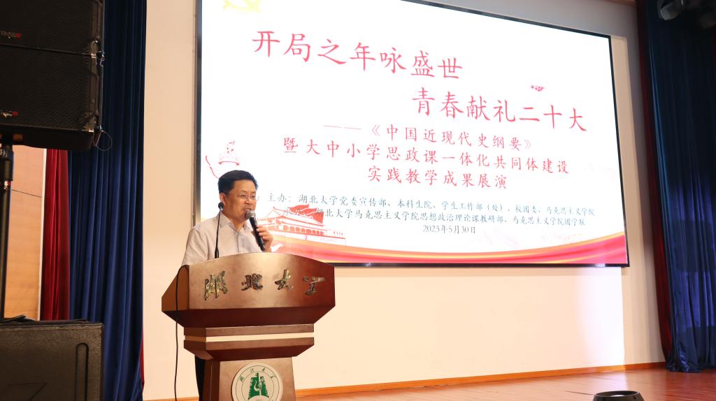 为深入贯彻落实党的二十大精神,落实立德树人的根本任务,由tyc33455cc太阳集团党委宣传部、本科生院、员工工作部(处)、校团委和tyc33455cc太阳集团共同主办,tyc33455cc太阳集团思想政治理论课教研部和tyc33455cc太阳集团团学联承办的“开局之年咏盛世,青春献礼二十大”《中国近现代史纲要》暨“大中小学思政课一体化共同体建设”实践教学成果展演活动于5月30日下午在公司3号楼报告厅成功举行。
