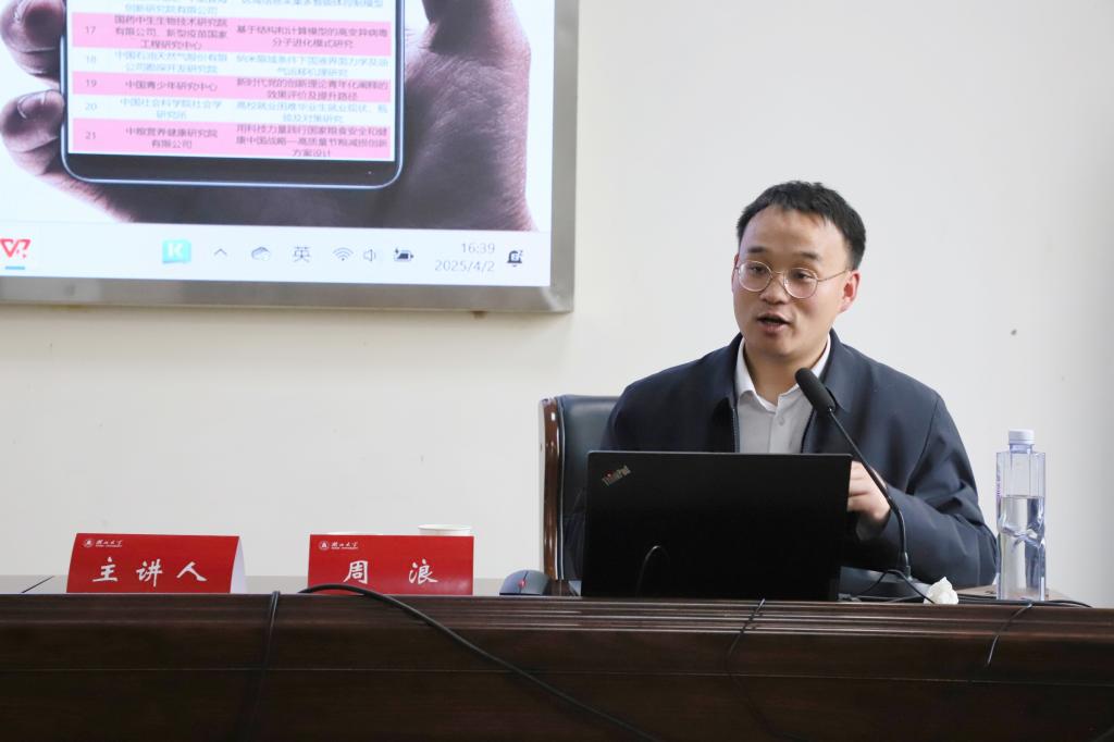 周老师结合历年获奖项目案例,对“挑战杯”大赛的备赛方法进行解读,并以自身指导“挑战杯”获奖经验为例,围绕破题导向、选题分析、师生合作、信息获取等方面全面系统阐释了如何打造高质量的“大挑”作品。