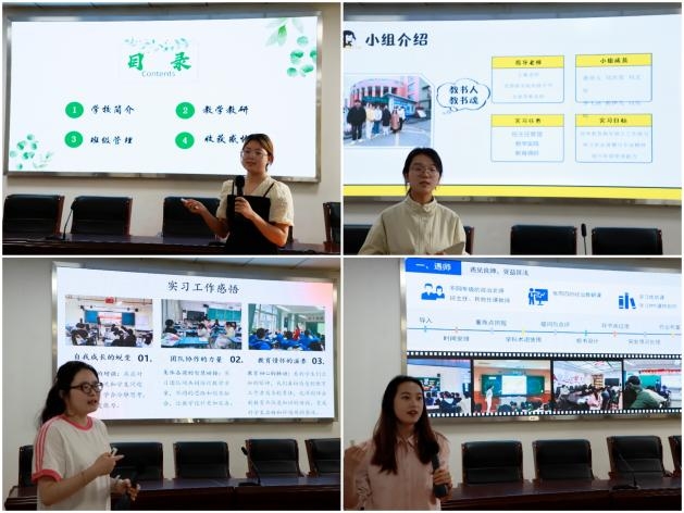 实习工作在一张张批改作业、辅导自习和考场监督的纪实画面中拉开序幕,最终定格在师生欢聚的温馨合影里。各实习小组纷纷感慨,这段实践经历让他们收获颇丰。