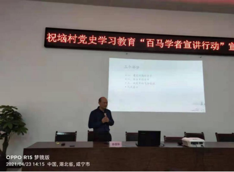 在祝垴村分会场,副经理徐信华教授以《青年与中国共产党》为题,运用大量第一手资料和经典案例,围绕“建党时期的青年”“长征中的青年”“战疫中飞扬的党旗”展现了青年在党的百年发展历程中的担当和作为,从历史到现实立体式呈现了青年的在党的引领下作出的贡献。