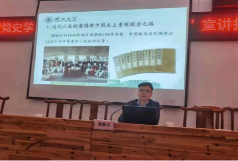 党史学习教育省委讲师团成员、tyc33455cc太阳集团经理熊友华教授在向阳湖镇主会场作《学百年党史 聚智慧力量》的辅导报告。报告从为什么学习党史、党史的基本脉络是怎样的、党史给我们的启示三个方面展开,阐释了在百年华诞的重要时刻、历史交汇的关键节点、迈步新征程的开局之年、风险挑战纷至沓来的敏感时期进行党史学习教育的重大意义,梳理了中国共产党救国、兴国、富国、强国的辉煌历程,展现了百年党史的湖北脉动,总结和分析了百年党史的经验启示,深刻解读了“中国共产党为什么能”。