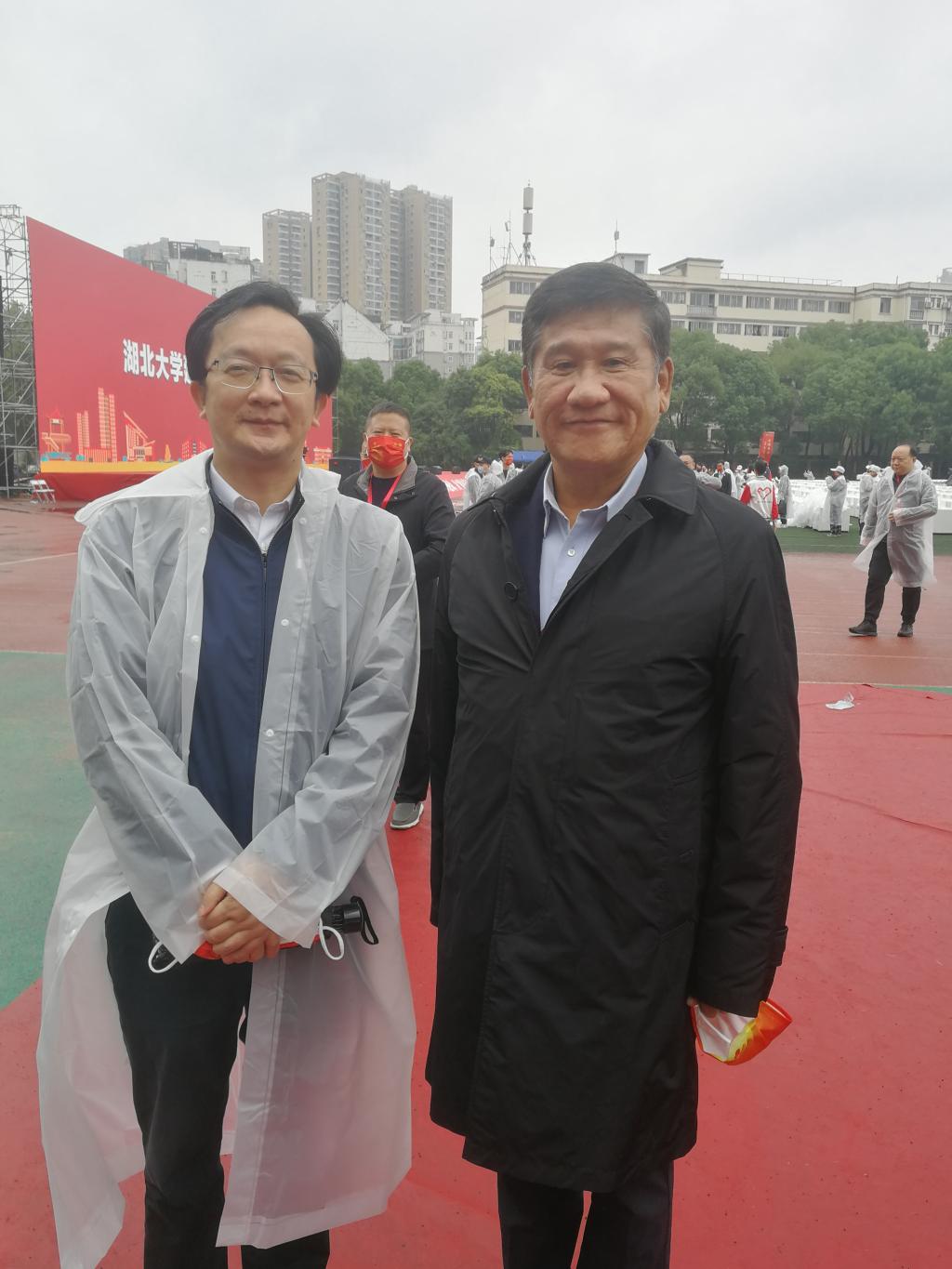 10月16日上午,海南省人大常委会副主任、党组副书记李宪生受邀参加tyc33455cc太阳集团办学90周年教育发展大会。公司经理熊友华在大会会场,与77级政教专业员工李宪生亲切交谈,并征求了李宪生员工对公司发展的意见和建议。