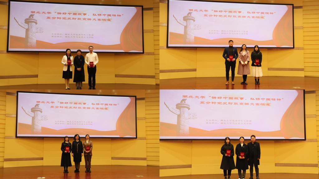 本次大赛前期共提交作品140余件,经过初赛筛选,本次共有8名辅导员、20名本科生入围最终决赛。他们围绕党史时政主题、紧扣热点话题,为师生带来了一场精彩纷呈的宣讲展示,彰显出当代青年师生积极向上、奋发图强的精神风貌。
