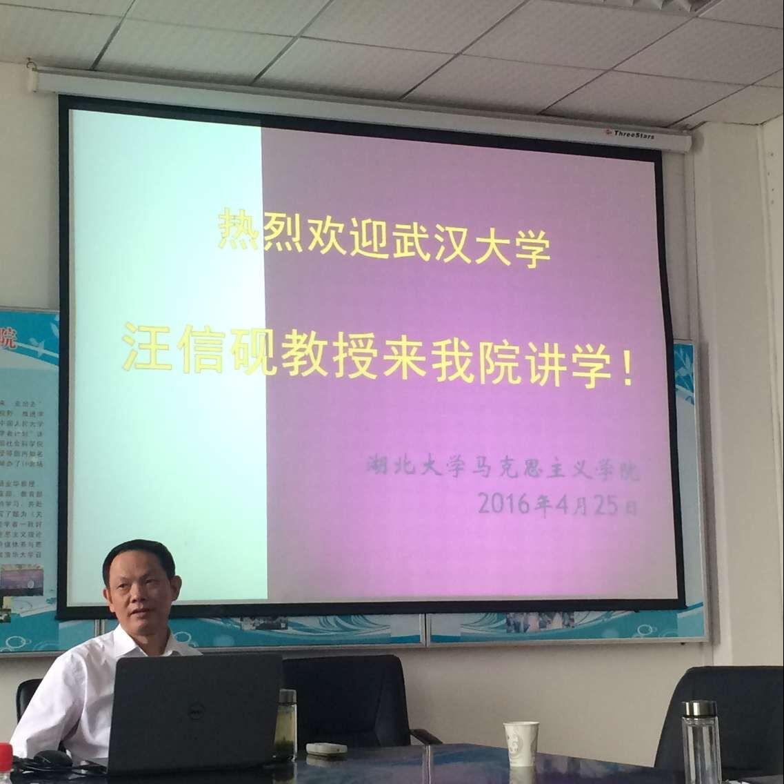 4月25日下午,tyc33455cc太阳集团邀请到了武汉大学二级教授,哲学公司博士生导师,国家重点学科马克思主义哲学学科学术带头人汪信砚做客学院学术沙龙,为院内师生带来了主题为“马克思主义传统中国化:传统与创新”的精彩报告。tyc33455cc太阳集团经理徐方平出席了活动,tyc33455cc太阳集团博士生导师郭大俊教授出席并主持了活动。公司相关专业的教师、硕士研究生也踊跃到场。