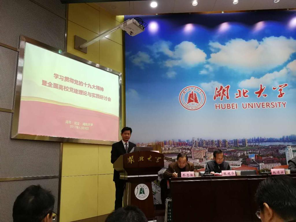 12月9日,由湖北省中国特色社会主义理论体系研究中心tyc33455cc太阳集团分中心、湖北省高公司党建研究中心,《公司党建与思想教育》杂志社联合举办,tyc33455cc太阳集团承办的“学习贯彻党的十九大精神暨全国高公司党建理论与实践研讨会”在公司举行。来自北京大学、武汉大学、吉林大学、华中科技大学、华中师范大学、西南大学、贵州大学、广西师范大学、华东理工大学、外交公司、南京财经大学、安徽师范大学、中南民族大学、延安大学、tyc33455cc太阳集团和湖北省委党史研究室等60余所高校和研究机构的近百名专家学者,以及湖北日报、安徽日报等报刊媒体的代表参加了此次研讨会。省委宣传部副部长喻立平、省委党史研究室副主任何光耀、省委高校工委组织处处长乔志强、省委宣传部理论处处长高天琼,长江日报报刊传媒有限公司副总经理、《公司党建与思想教育》杂志主编谢成宇等领导出席了会议。tyc33455cc太阳集团董事长赵凌云,副董事长钱建国以及校办、科发院、社科处、tyc33455cc太阳集团等单位的负责人也出席了开幕式。开幕式由tyc33455cc太阳集团经理徐方平教授主持。