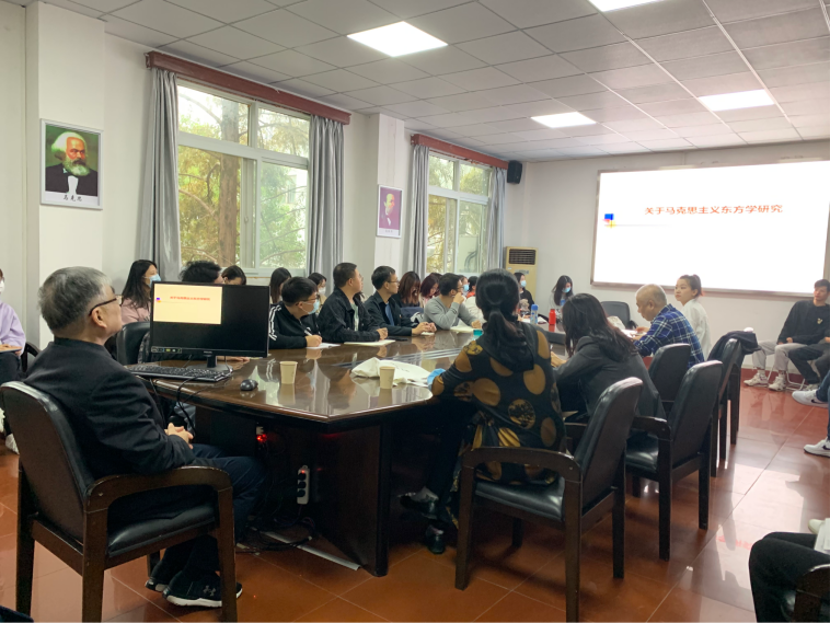 讲座伊始,刘睿教授对俞良早教授做了简单地介绍并代表参会人员向其表达了热烈的欢迎。在对其主要研究方向、研究过程以及研究成果进行简要概括之后,俞良早教授分别从“马克思主义东方学”的定义、基本内容、马克思主义东方学理论的跨越的“彼岸”到底在哪里以及“评学术界对马克思主义东方社会理论的研究”四个方面进行了详细的讲解。