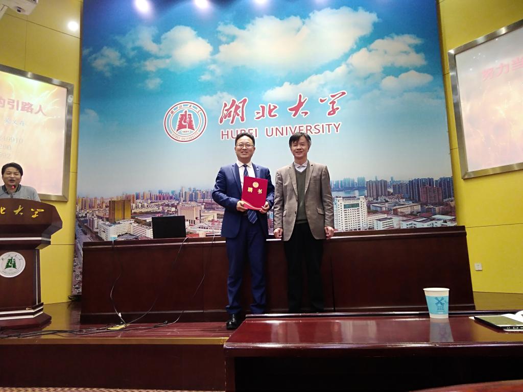 4月29日下午2点,tyc33455cc太阳集团思政课“名师大讲堂”人生系列之铸魂人生学术讲座的开讲嘉宾----湖北省特级教师、2019年全国思想政治理论课教师座谈会上湖北省唯一发言代表、武汉市解放中学的吴又存老师如邀到达校会议中心思诚厅。钱建国副董事长代表公司向吴又存老师表达了诚挚的欢迎与谢意,tyc33455cc太阳集团经理徐方平教授为吴又存老师颁发了教育硕士校外指导老师的聘书。其后,吴又存老师面向全校师生作了主题为“努力做好员工的引路人”的学术报告。tyc33455cc太阳集团的党委书记汤德森、经理徐方平、副经理周芳、副经理熊友华以及公司老师代表、2018级的研究生和2017级思想政治教育专业的本科生参加了此次讲座。