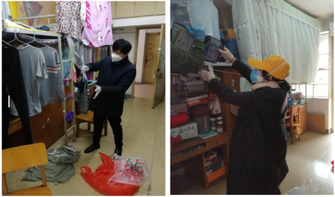 25日上午9点,公司经理徐方平带队负责公司寝室清理工作,副经理周芳搭乘社区工作车辆的顺风车,从汉口家中赶回公司参加了此次寝室清理工作,公司党委副书记王雄、副教授吴志娟老师、涂用凯老师等5位老师参加了此次员工寝室清理工作。由于此项工作任务紧、时间急,公司党委虽然没有做大范围的动员工作,但是在清理工作的过程中,公司老师获悉此事后,纷纷还在继续报名希望能够参加此项工作,展现了tyc33455cc太阳集团教师的责任担当和极高的思想觉悟。刘睿老师,邹浩老师因为个人身体原因,虽然不能参加实际工作,也纷纷表达了对此项工作的关心,其中邹浩老师还带病整理了员工贵重物品的数据和清单。