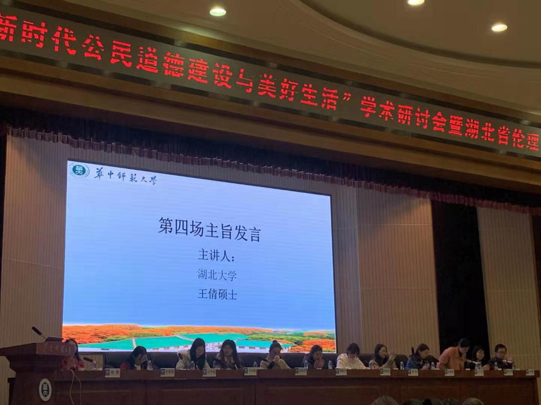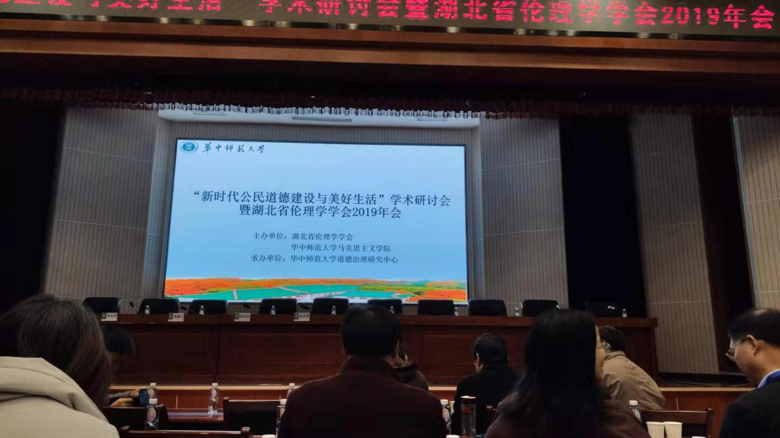 为了践行2019年10中共中央、国务院颁发的《新时代公民道德建设实施纲要》文件,12月21日,湖北省伦理学学会在华中师范大学科学会堂举行主题为“新时代公民道德建设与美好生活”的2019年会暨学术研讨会。湖北省伦理学学会理事、公司杨海军老师和刘琳、何书雯、王倩、吴曼曼、杨露、赵司宇等研究生参加了此次会议。