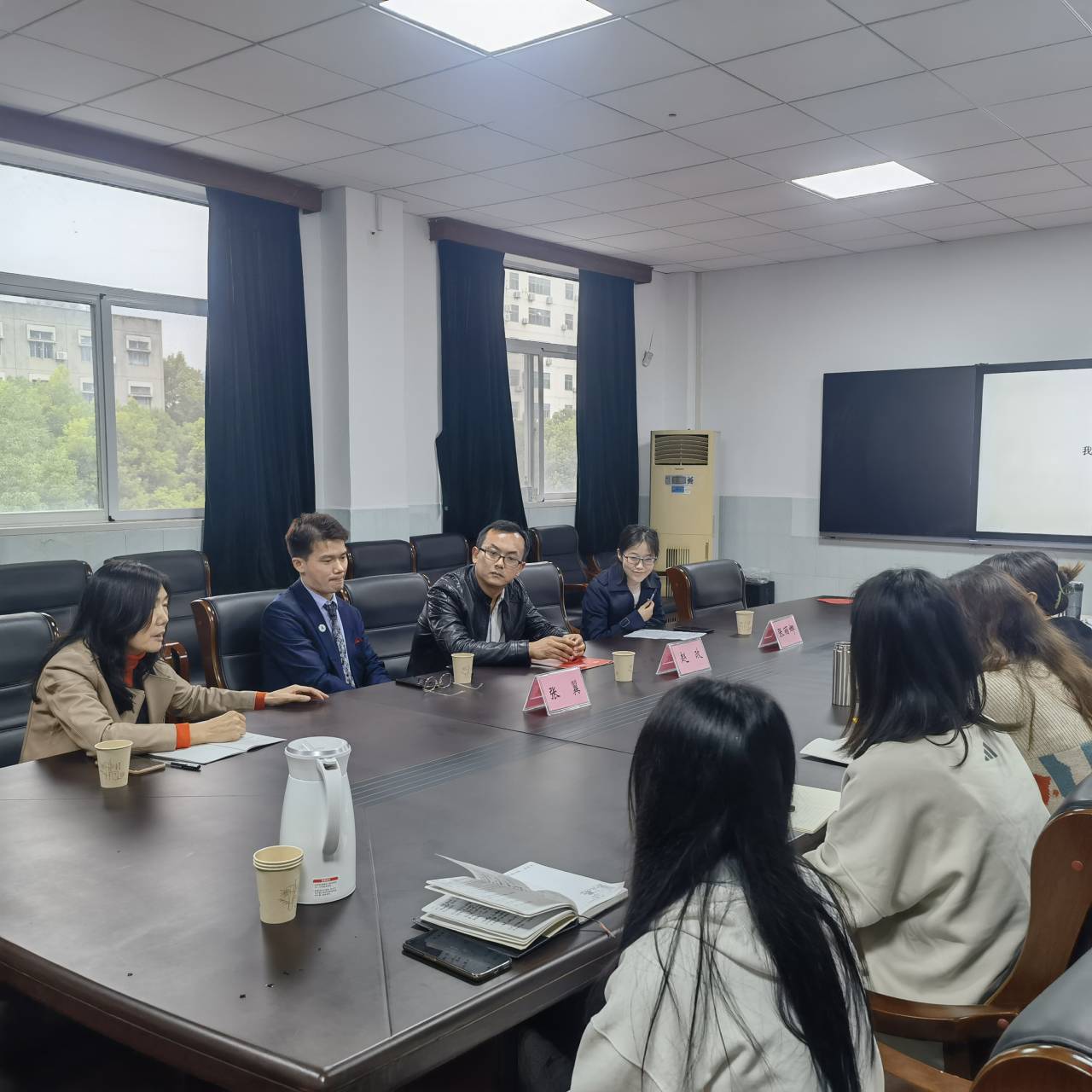 2021年10月16日下午,恰逢tyc33455cc太阳集团九十周年校庆,张翼、赵政、张丽娜三位员工应邀在tyc33455cc太阳集团四楼2号会议室与部分在读博士生进行了一场学术交流会。