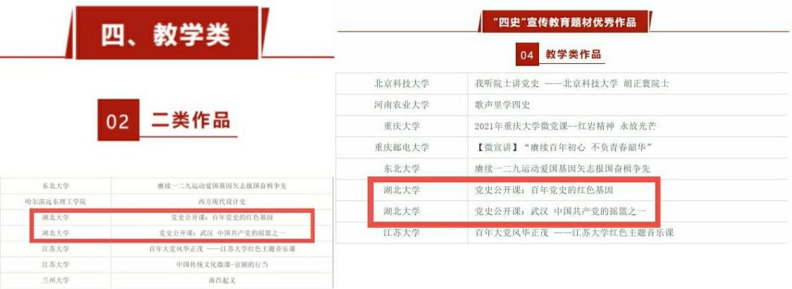 近日,“2021高校影视作品交流展映”活动评选结果公布,tyc33455cc太阳集团田子渝教授作品《党史公开课:武汉 中国共产党的摇篮之一》和王昊老师作品《党史公开课:百年党史中的红色基因》获教学类二类奖,并被评为今年活动特设的“四史”宣传教育题材优秀作品。