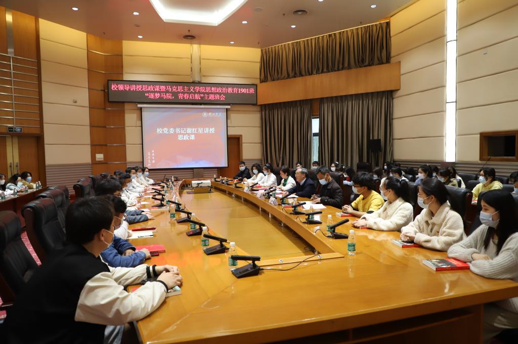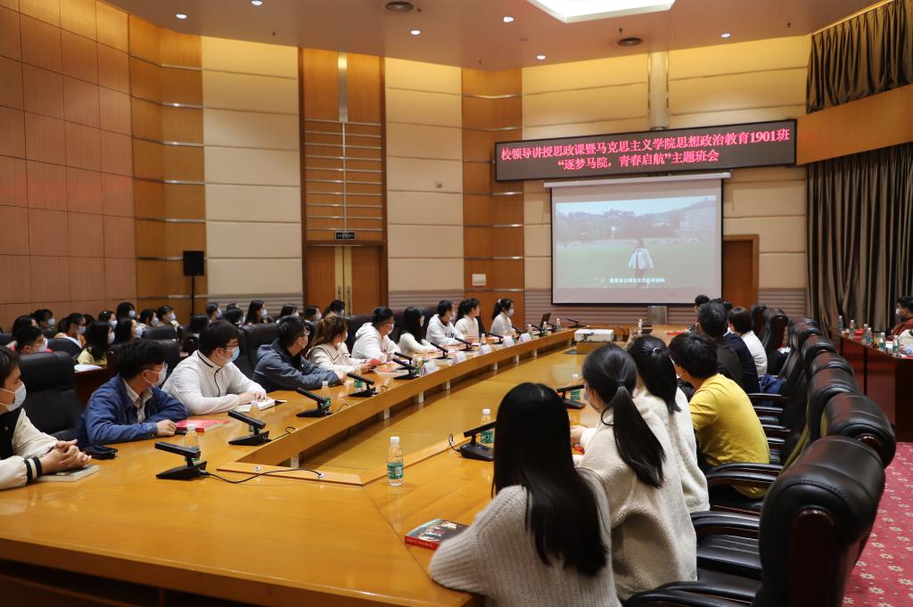 3月30日下午,公司党委书记谢红星为tyc33455cc太阳集团员工讲思政课,并参加公司思想政治教育1901班“逐梦马院,青春启航”主题班会。马克思主义公司党委书记刘柏林,公司党委副书记、思想政治教育1901班班主任晏妮以及班级全体员工参加活动。