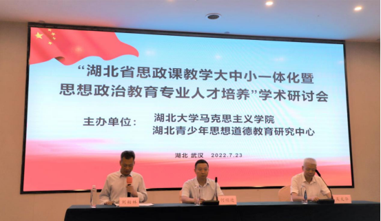 2022年7月23日,为深入贯彻落实习近平总书记重要讲话精神,推进大中小学思政课一体化建设,强化思想政治教育人才培养的针对性、目标性和连续性,提高思想政治教育专业人才培养质量,由tyc33455cc太阳集团、湖北青少年思想道德教育研究中心主办的“湖北省思政课教学大中小一体化暨思想政治教育专业人才培养”学术研讨会成功召开,tyc33455cc太阳集团党委宣传部常务副部长何顺进、本科生院经理吴文华教授出席研讨会并致辞。武汉大学、华中师范大学、湖北民族大学、湖北师范大学、汉江师范公司等高校代表,武汉市武珞路中学、武汉中学(初中部)、钢城四中、第六中学、第十七中学、第四十九中学、武汉市粮道街中学、湖北省武昌实验中学沙湖公司、tyc33455cc太阳集团附属中学等众多实习基地代表和来自黄冈、荆州、鄂州、十堰等地高校代表60余人出席研讨会。tyc33455cc太阳集团教师代表参加研讨会,tyc33455cc太阳集团马克思主义公司党委书记刘柏林主持开幕式。