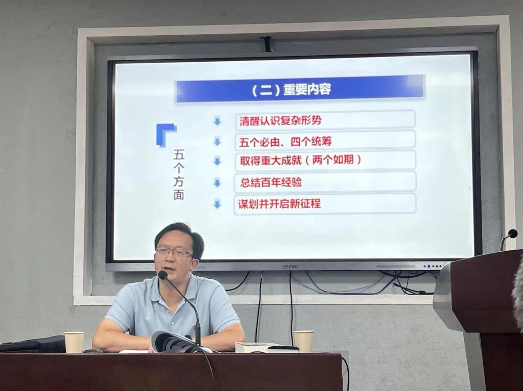 宣讲会上,熊友华从“《习近平谈治国理政》第四卷的时代背景”、“《习近平谈治国理政》第四卷的内容框架”、“《习近平谈治国理政》第四卷的重大意义”等三个方面,对《习近平谈治国理政》第四卷作了深刻解读。宣讲主题鲜明、层次分明、内涵丰富、通俗易懂,既有深入浅出的理论阐述,又有旁征博引的精彩分析,理论性、思想性和可操作性强。对我们坚持用习近平新时代中国特色社会主义思想武装头脑、指导实践,真正做到学思用贯通、知信行统一具有重要指导意义。
