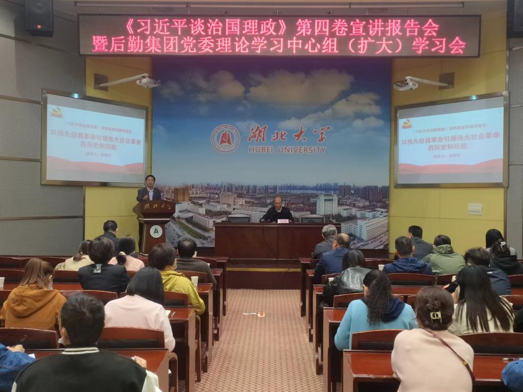 10月5日,tyc33455cc太阳集团教授徐信华以“以伟大自我革命引领社会革命的历史和经验——《习近平谈治国理政》第四卷宣讲辅导报告”为题,在会议中心思诚厅开展专题宣讲活动,公司后勤集团全体党员以及tyc33455cc太阳集团研究生宣讲团部分员工参加此次学习。