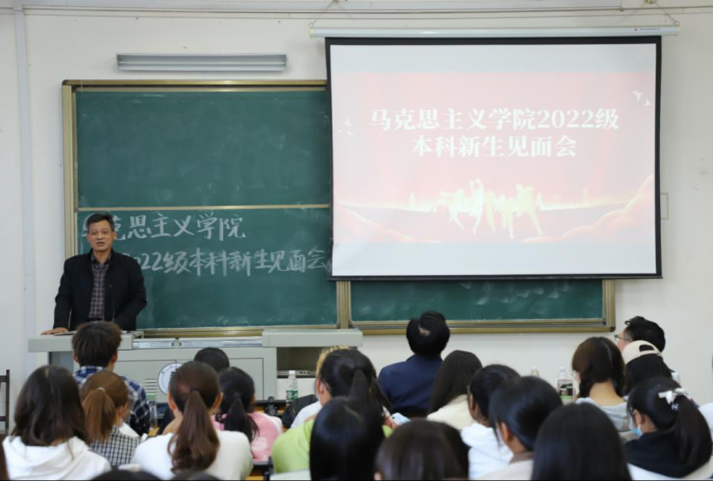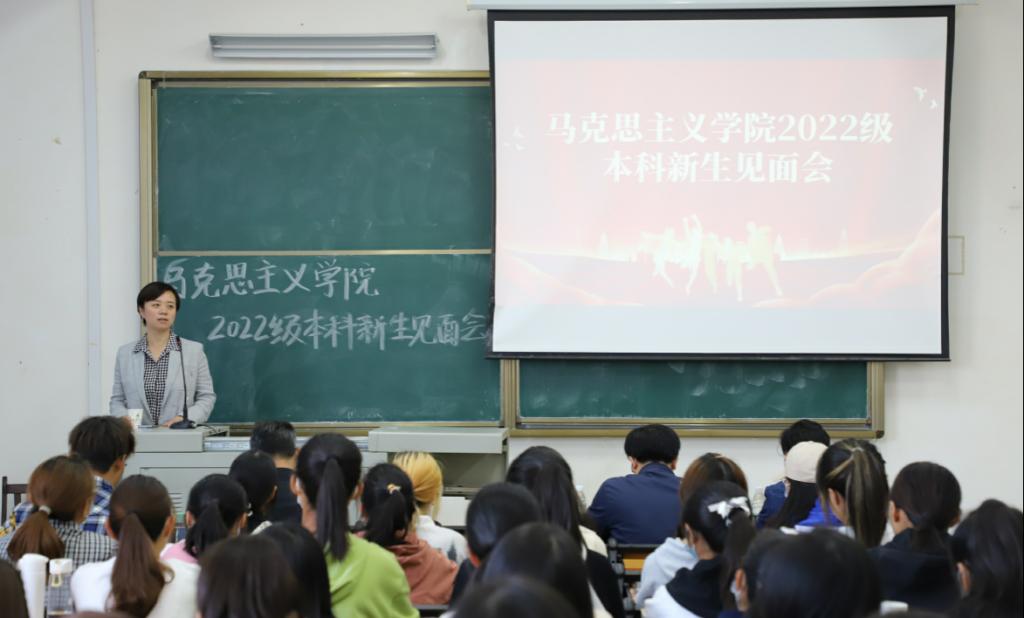 10月19日下午,公司2022级本科生新生师生见面会在阳逻校区B403教室举行。公司党委书记刘柏林,经理熊友华,党委副书记晏妮,副经理易振龙、徐信华,新生班主任王昊、邹浩,通识教育公司辅导员史健桥以及2022级本科生新生参加见面会。会议由公司党委副书记晏妮主持。