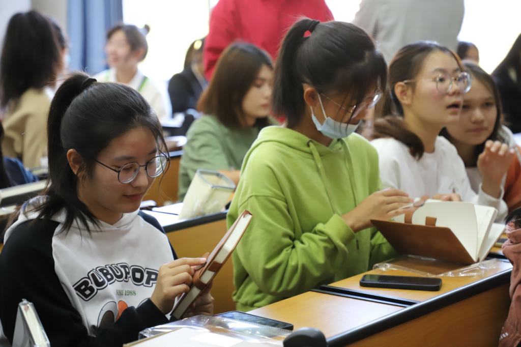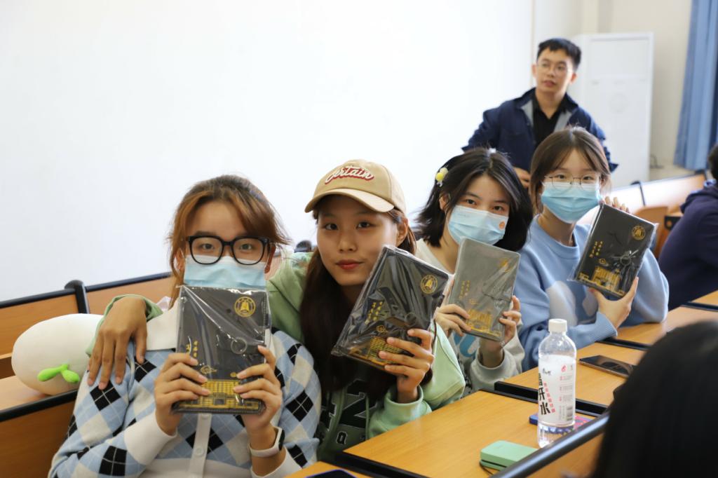 (图为2022级思想政治教育专业新生收到定制笔记本并一起合影)