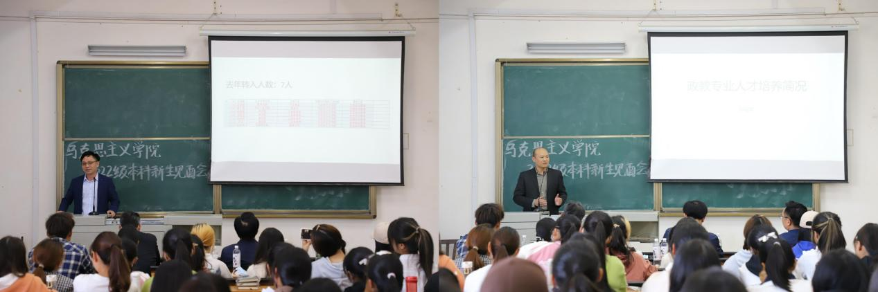 教师代表、新生班主任王昊发言。他围绕思想政治教育学科发展历史、学科背景、研究重点、核心素养等方面向同学们详细介绍相关情况。他强调,同学们不仅要注重本学科专业知识学习,还要注重思政相关学科知识的学习,在学习中做到融会贯通,立志成为专业复合型人才。