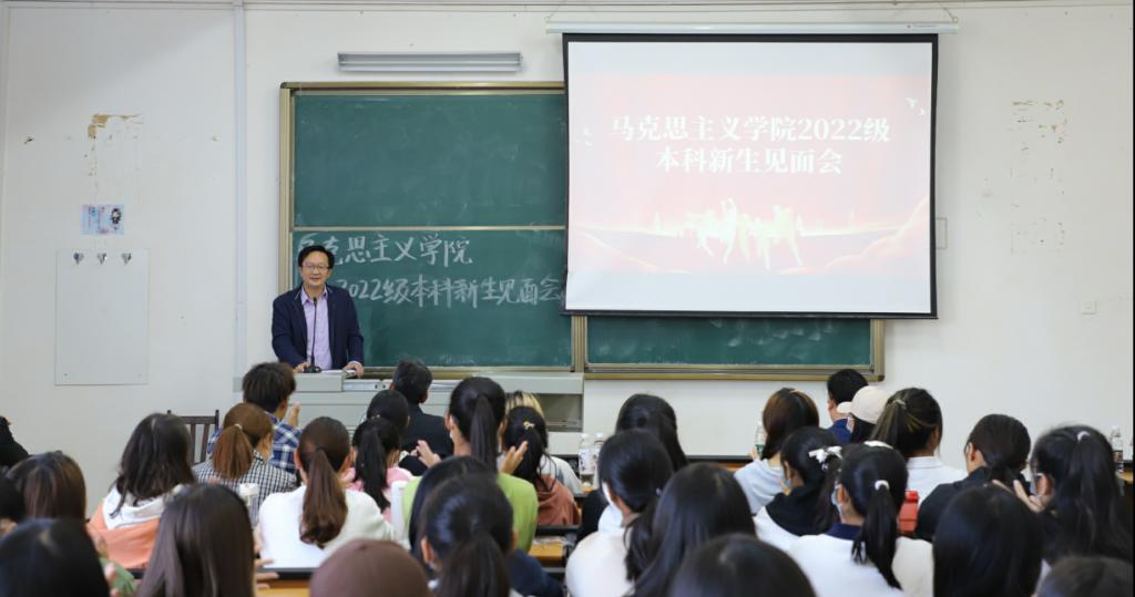 22级思想政治教育专业本科生马若涵代表新生代表发言。“青春不以山海为远,志愿只向家国未来。”她分享了加入马院大家庭的喜悦与成为马院人的责任。在座新生纷纷表示将认真传承“马院一家人”的优良传统,刻苦学习,提升专业素养,肩负时代责任,不负青春韶华,早日成为堪当民族复兴大任的时代新人。