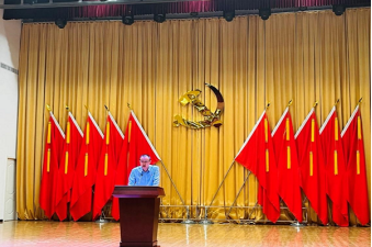 在授牌仪式现场,江夏区文旅局、金口街道文化站先后带来了《草把龙》《采莲船》《大美江夏》等节目,公司8名员工合唱《我和我的祖国》,展现了青年学子爱国爱党之情。市委宣传部副部长、市社科联主席吴天勇向tyc33455cc太阳集团、江夏区金口街道授予“理论热点面对面实践基地”牌匾。街道党工委书记发表致辞表示,将全力支持“理论热点面对面实践基地”理论宣讲工作,努力将其打造成武汉市优秀实践基地。