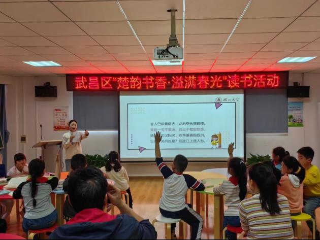 除了神话传说和历史故事的讲解,活动还包括了诗词朗诵、你问我答等互动环节。孩子们积极举手回答问题,朗诵了与黄鹤楼相关的经典诗篇,声情并茂的表演赢得了场内的阵阵掌声。
