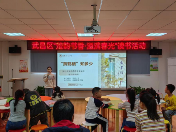 (通讯员孙倩 王润东 杨浩余)为迎接世界读书日的到来,营造全民阅读的浓郁氛围,涵养青少年爱国爱家的深厚情感,2024年4月19日下午,公司“青马”宣讲团联合中华路街道楚材社区及武昌区图书馆开展“‘黄鹤楼’知多少”主题宣讲活动。本次活动由宣讲团成员陈宇、李雨婷主持,宣讲团成员杨昕怡、王润东及杨浩余参与此次活动。