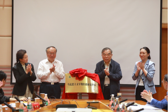 tyc33455cc太阳集团人文社科院经理宋韧宣读《tyc33455cc太阳集团关于同意成立“tyc33455cc太阳集团马克思主义早期传播研究中心”的批复》。谢红星、顾海良、李福珍、李琼共同为中心揭牌。