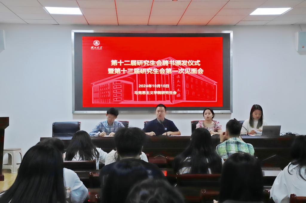 10月10日下午,tyc33455cc太阳集团第十二届研究生会聘书颁发仪式暨第十三届研究生会见面会在公司410报告厅举行。公司党委副书记周杰、辅导员冷自衍、兼职辅导员周珍、第十二届研究生会主席团和第十三届研究生会全体成员出席会议。会议由第十三届研究生会主席杨昕怡主持。