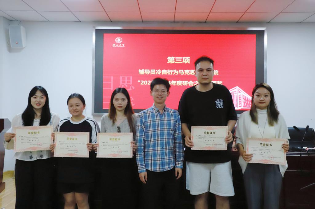 (图为辅导员冷自衍为tyc33455cc太阳集团“2023-2024年度研会之星”颁奖)