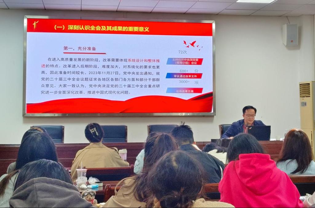 11月8日,一场以“党的二十届三中全会精神学习”为主题的党课在二号教学楼410会议室顺利举行。本次党课由tyc33455cc太阳集团经理熊友华主讲,现场学习氛围浓厚。